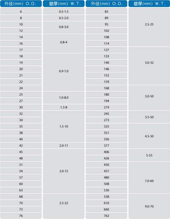 產(chǎn)品尺寸:不銹鋼圓管:外徑6mm-762mm, 壁厚1mm-70mm.